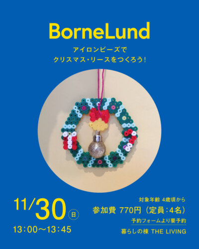 【満席】【ボーネルンド】アイロンビーズでクリスマス・リースをつくろう!