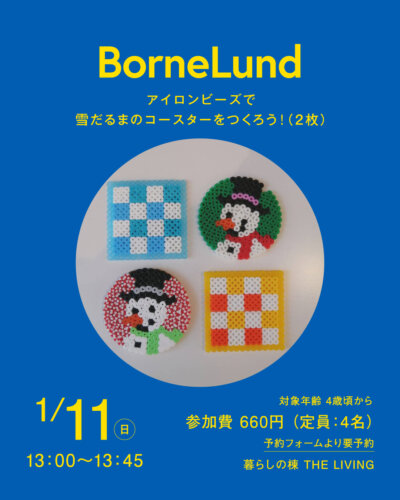 [満席]【ボーネルンド】アイロンビーズで雪だるまのコースターをつくろう!(2枚)