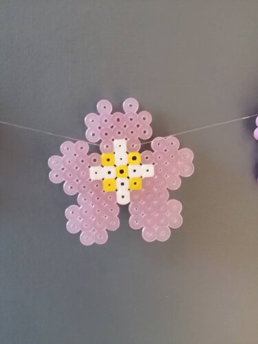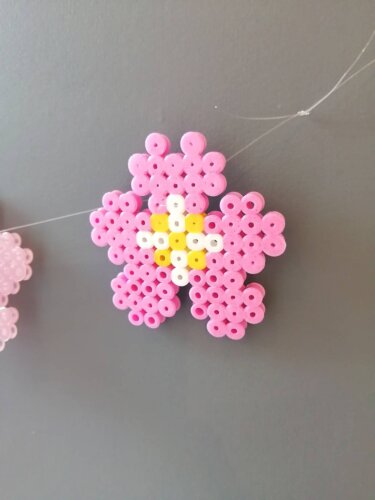 アイロンビーズで桜のガーランド作り。