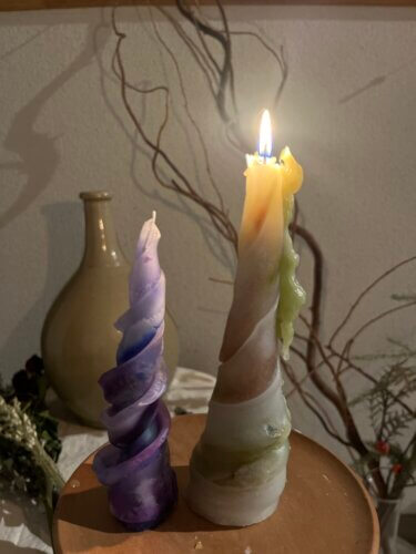 ねじりを加えて細長くしたり。ひだをつけたり。 ぜひオリジナルの蝋燭を作成してみてくださいね。