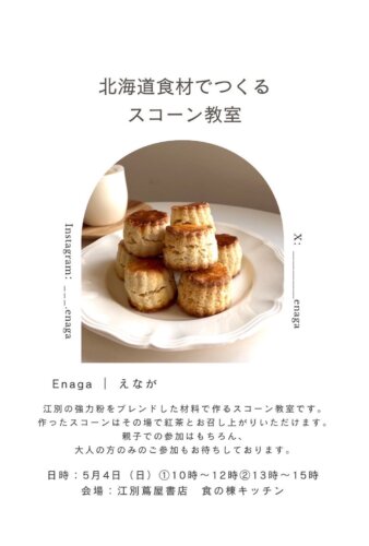 1年ぶりに、北海道食材で作るスコーン教室を開催します。