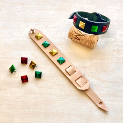 お好きなカラーのスタッズを並べて、あなた仕様の一本に仕上げられるブレスレット。