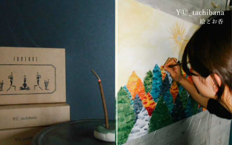 現在は「絵とお香」をメインに自然素材を使ったアートワークを行っています。