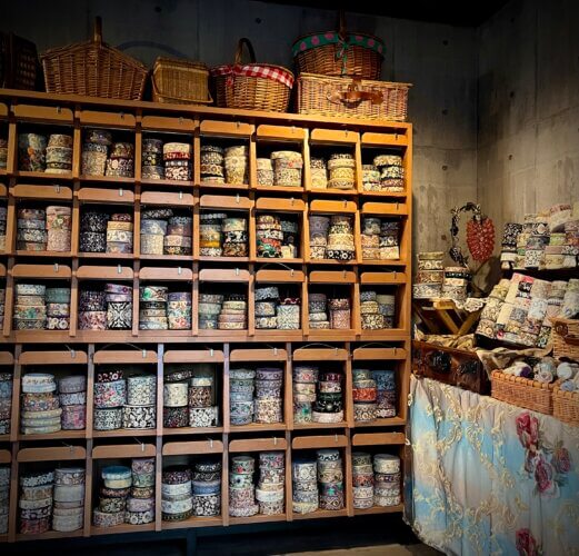 現在約1,400種類ほどのリボン、刺繍生地やビーズ、パーツなどを取り揃えております。