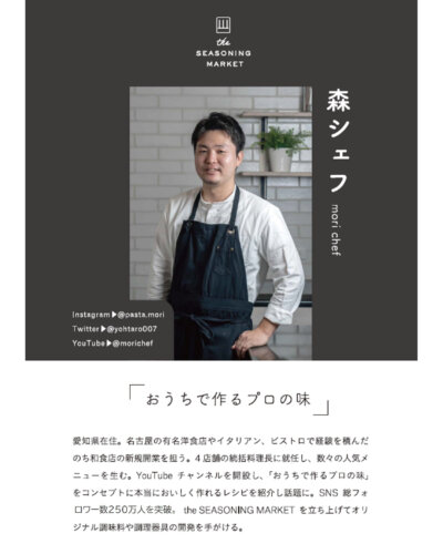 【森シェフ プロフィール】